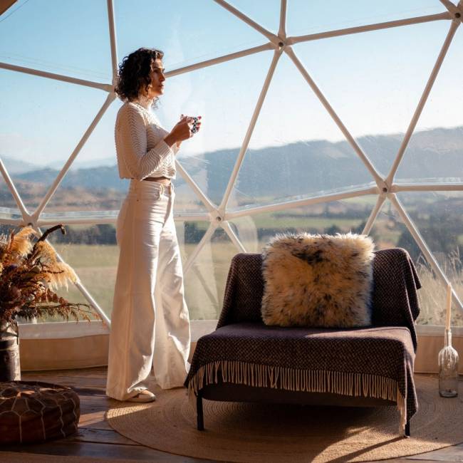 Discover the beauty of the South Island's Waitaki Valley, where luxury and nature blend seamlessly at the multi-award-winning Valley Views Glamping. Gaze out over sweeping landscapes and majestic mountains from your own geodesic dome, designed to bring the outdoors in. Wake to the gentle chorus of birdsong, watch the sun rise over the valley, and feel completely immersed in this secluded haven — where every moment celebrates the splendour of nature.