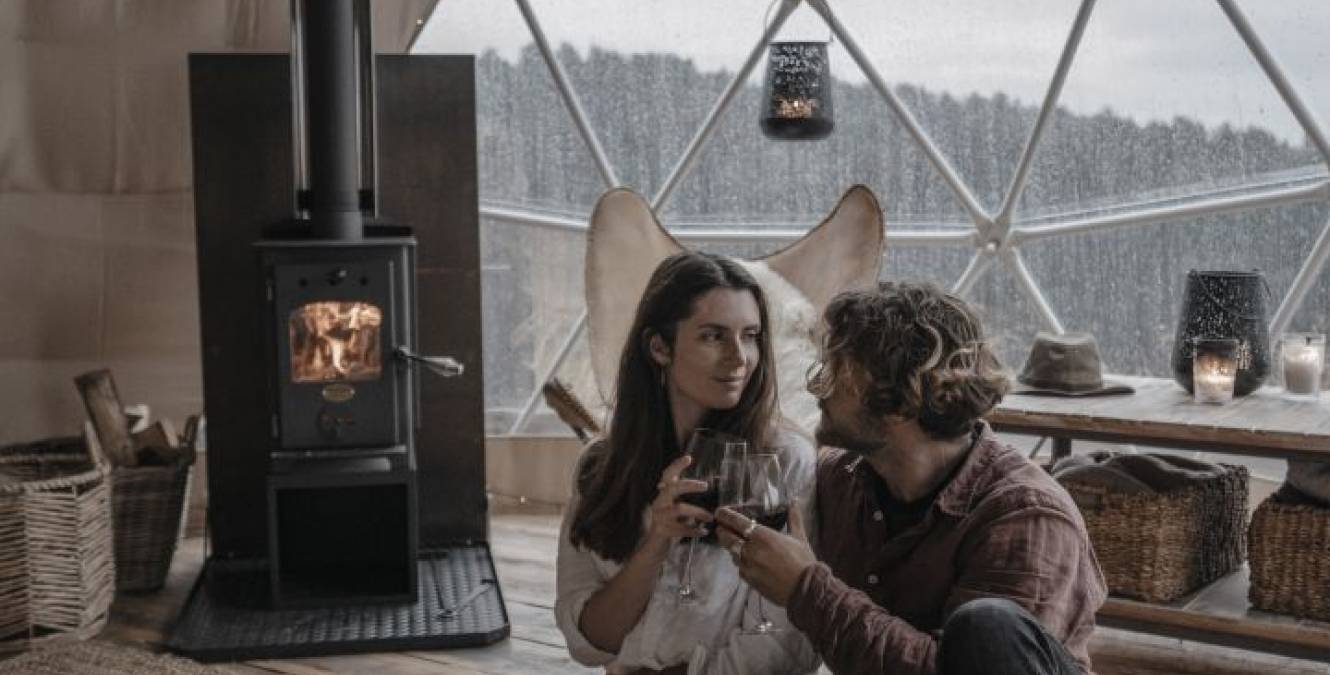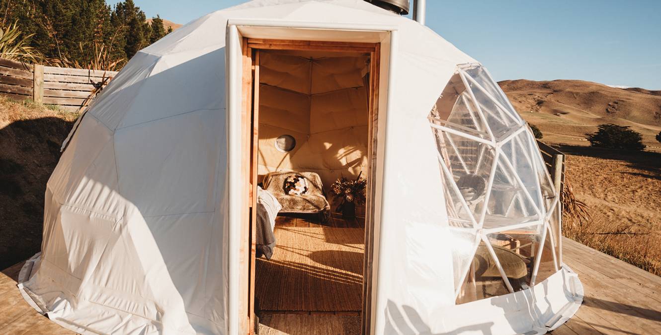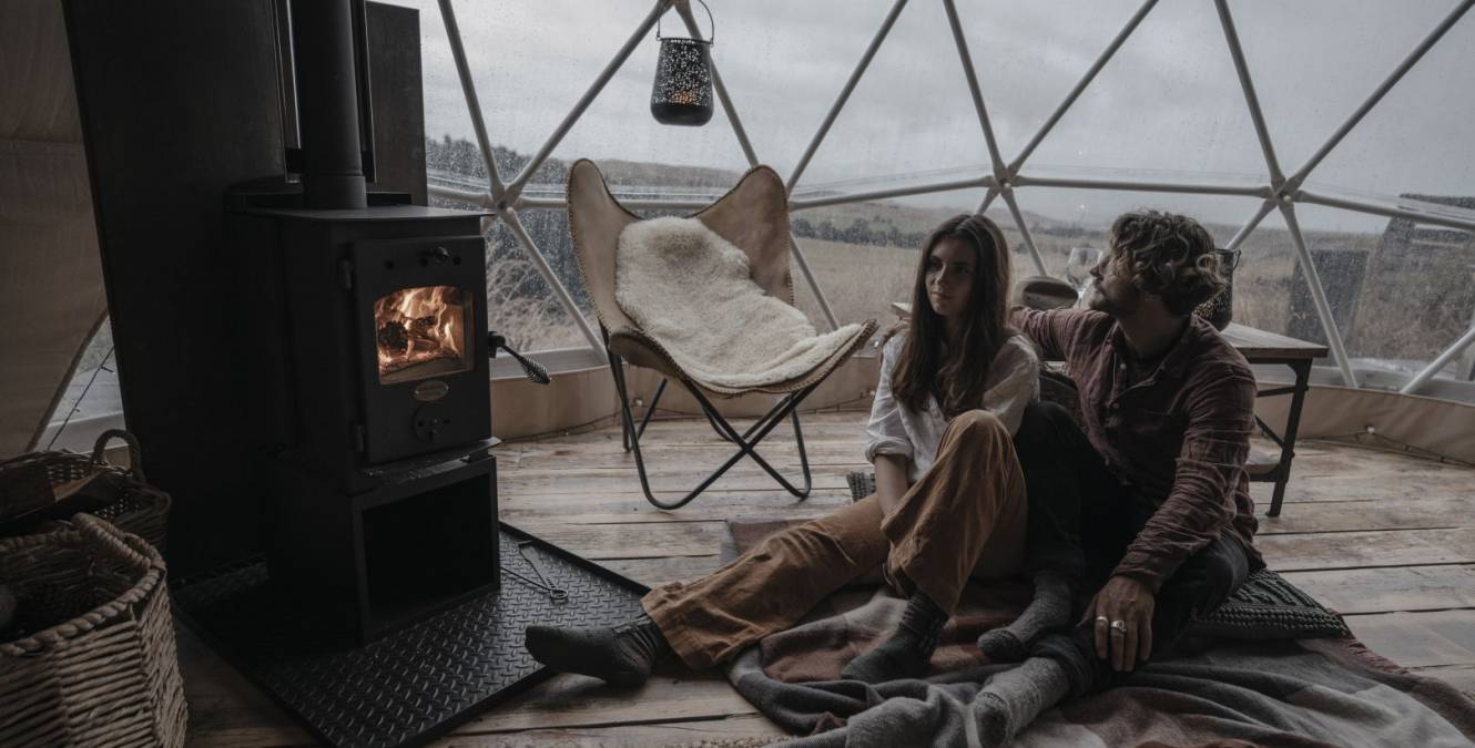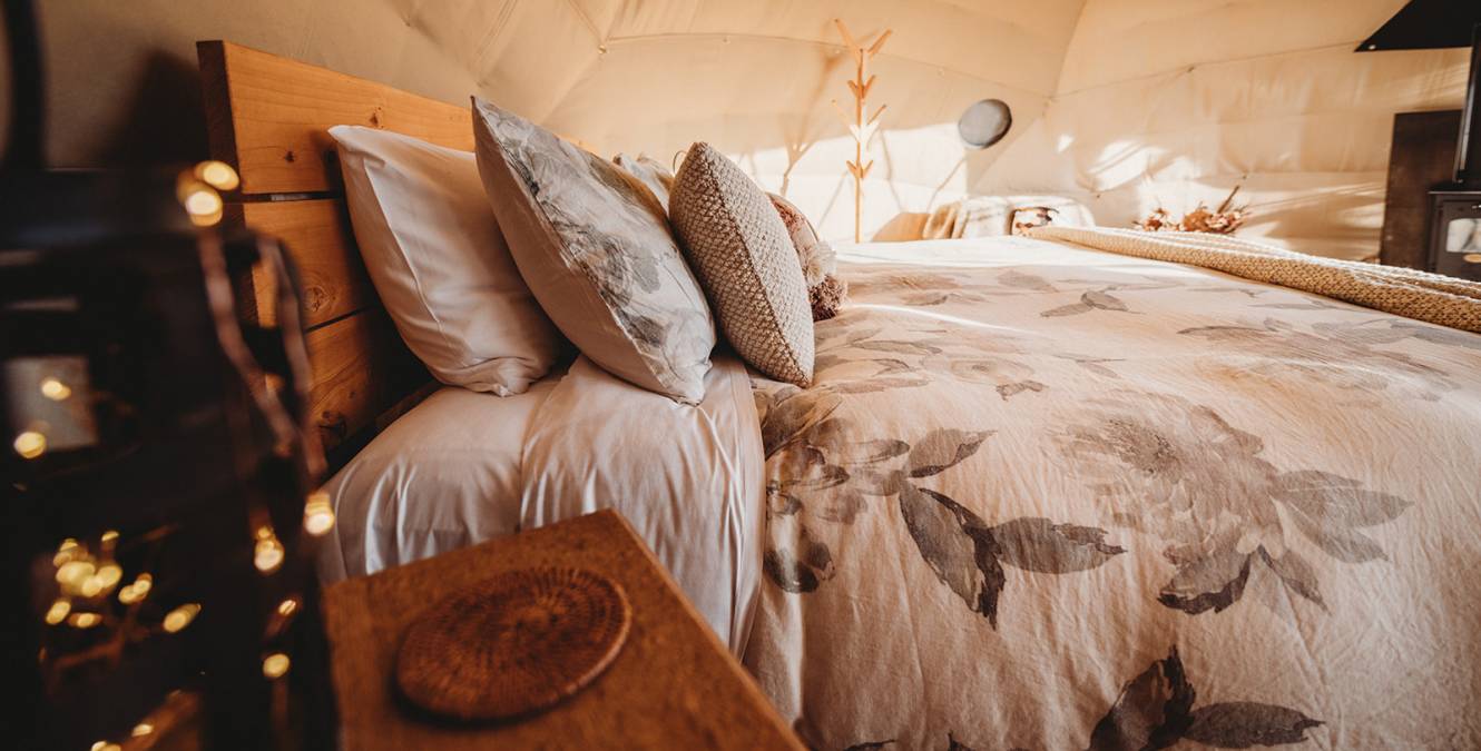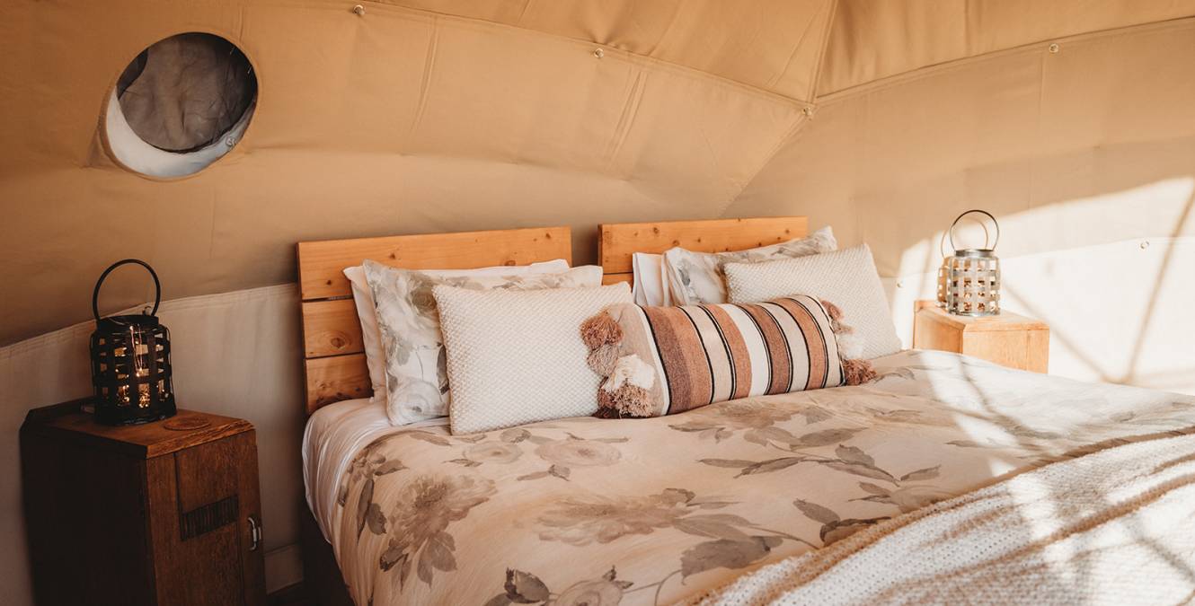 This Geodesic Dome tent is 6 metres in diametre with a large bay window in front with private views of the stunning scenery. A super-king sized bed, with a luxury down duvet and linen duvet cover, pure woollen blankets, seating, bedside tables, lighting, cell phone charger, and a private balcony. Two fold out beds can sleep an extra 2 people. A small log burner for use during winter months (May to September) keeps the dome toasty warm. *Price includes breakfast*